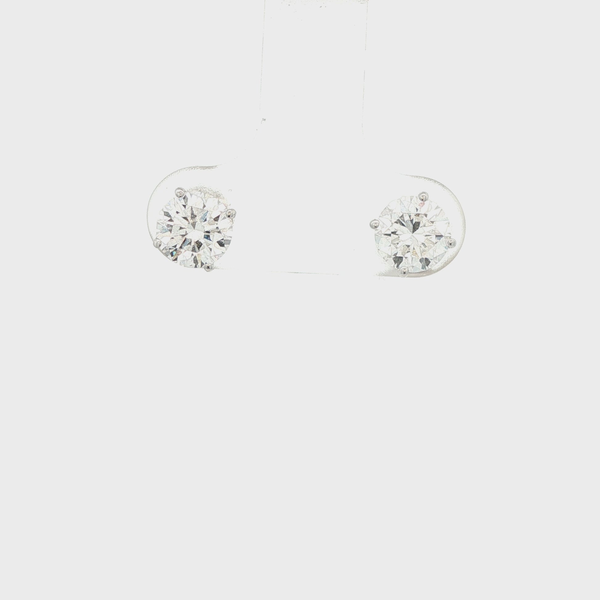 14K White Gold Round Cut Lab Grown Diamond Earrings - 1.50 ctw VS Clarity
