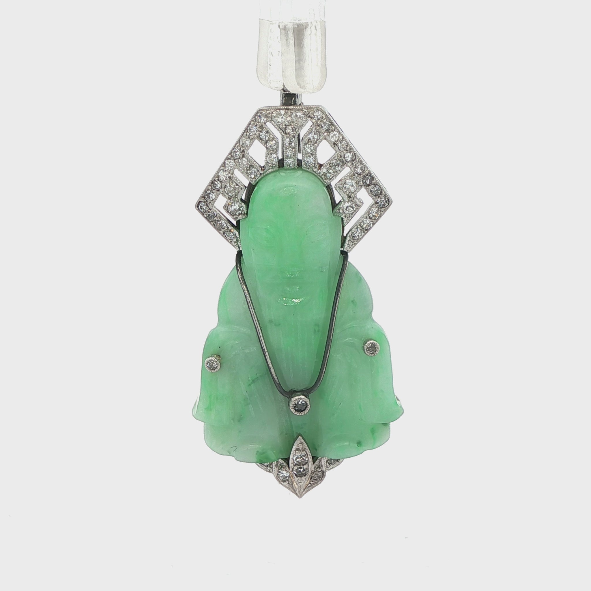 14k White Gold Estate Diamond and Apple Jade Buddha Brooch/Pin