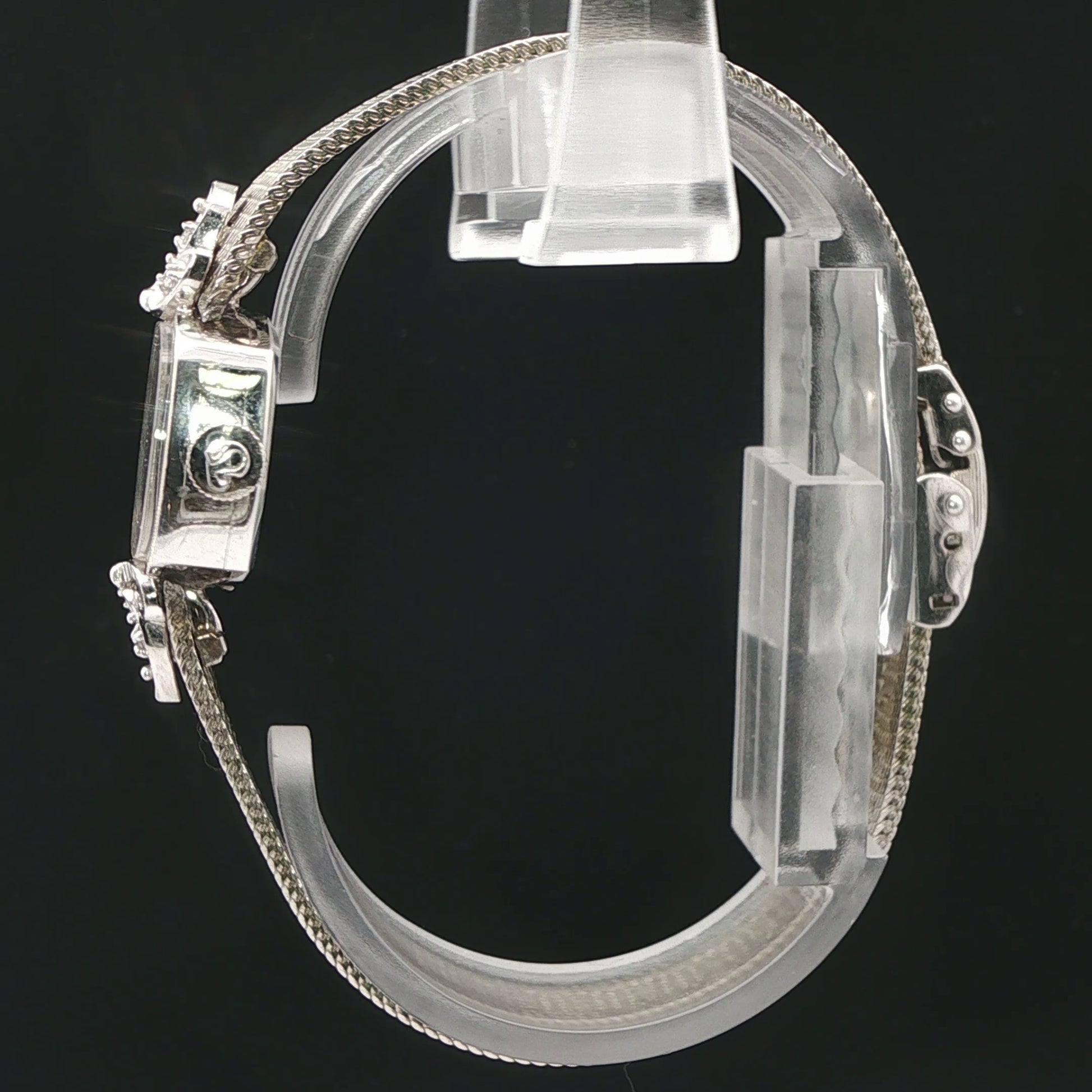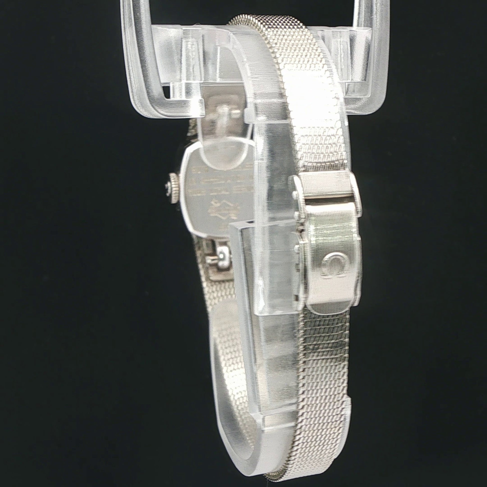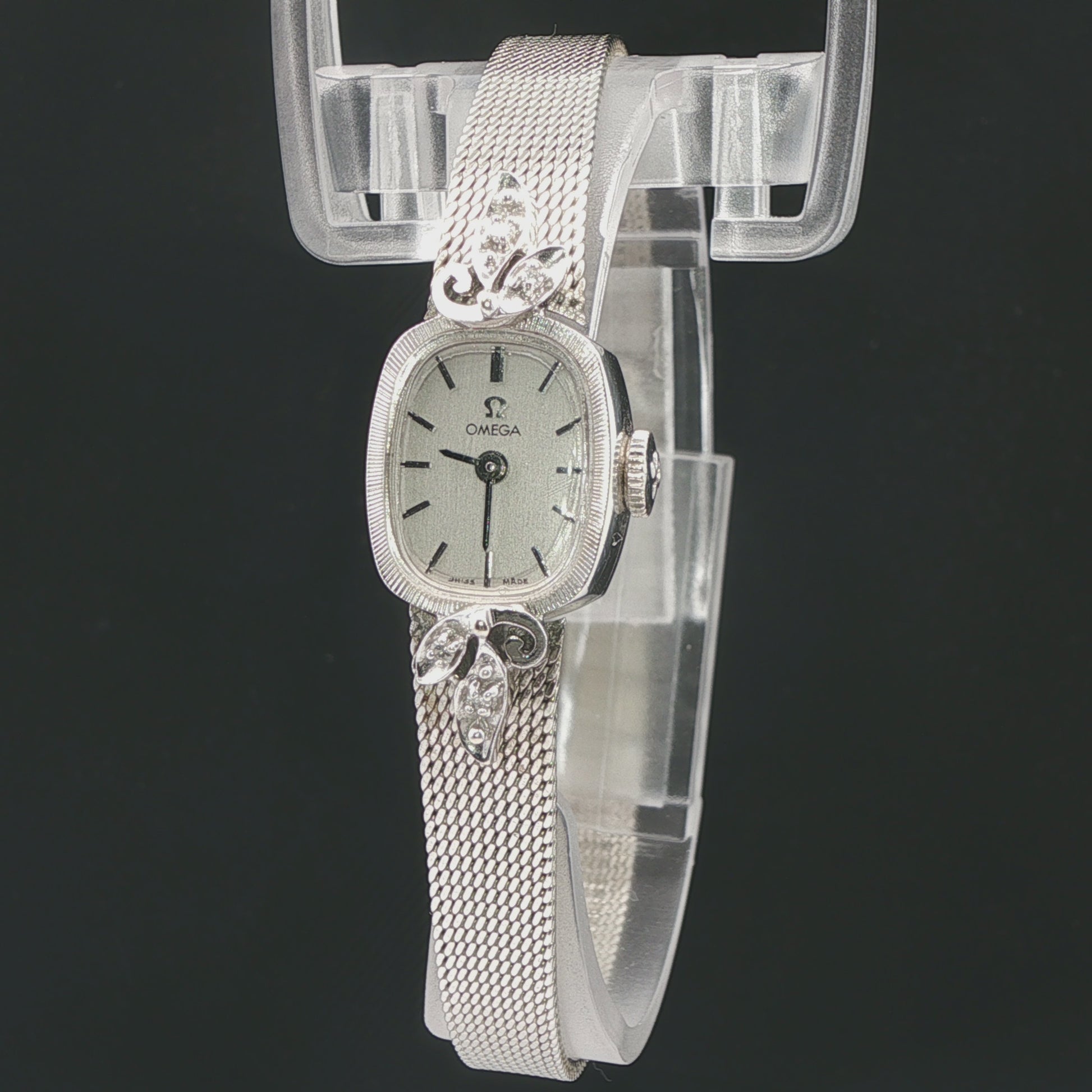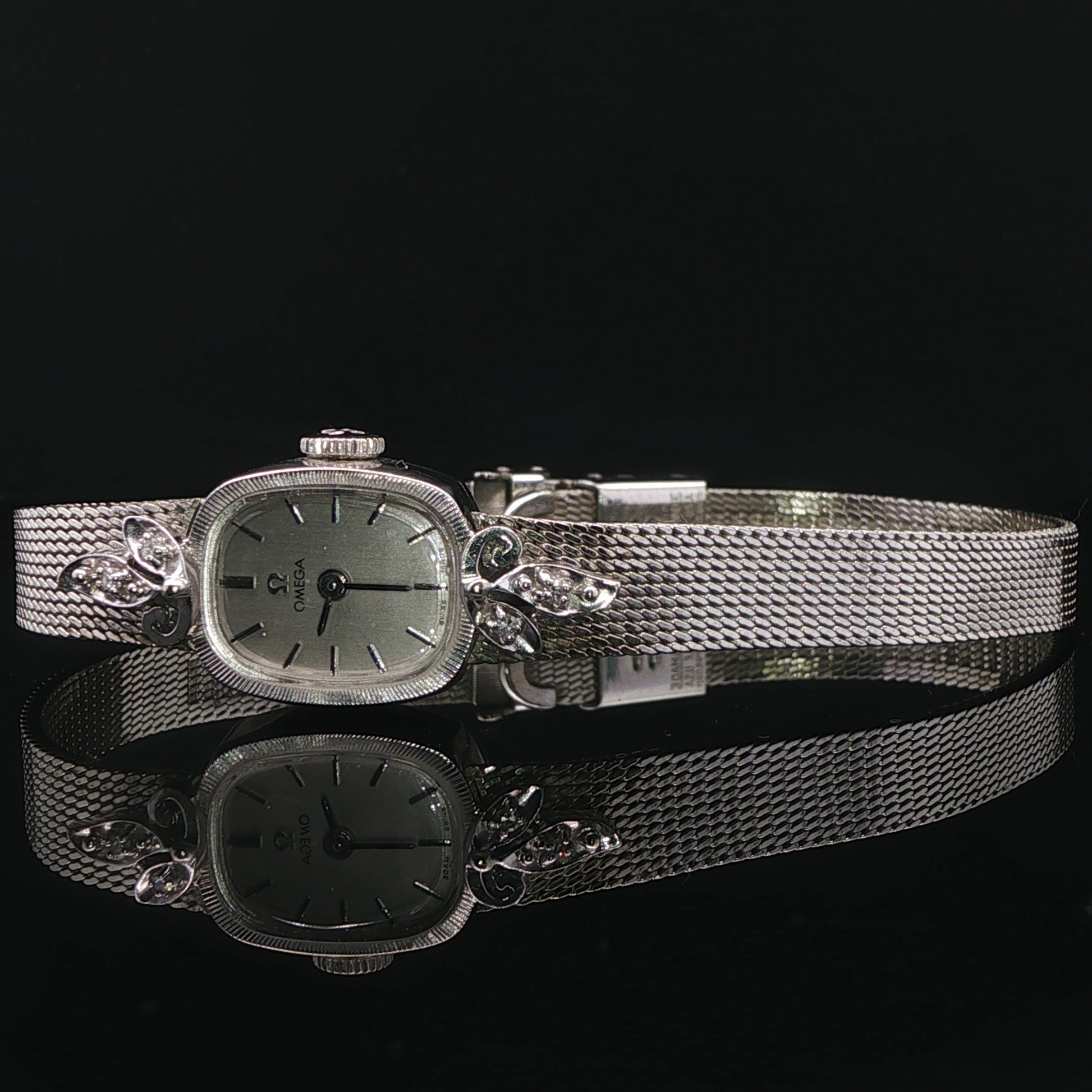 Very hard to find. Vintage Omega watch with 4 round diamonds, patented adjustable watch band,