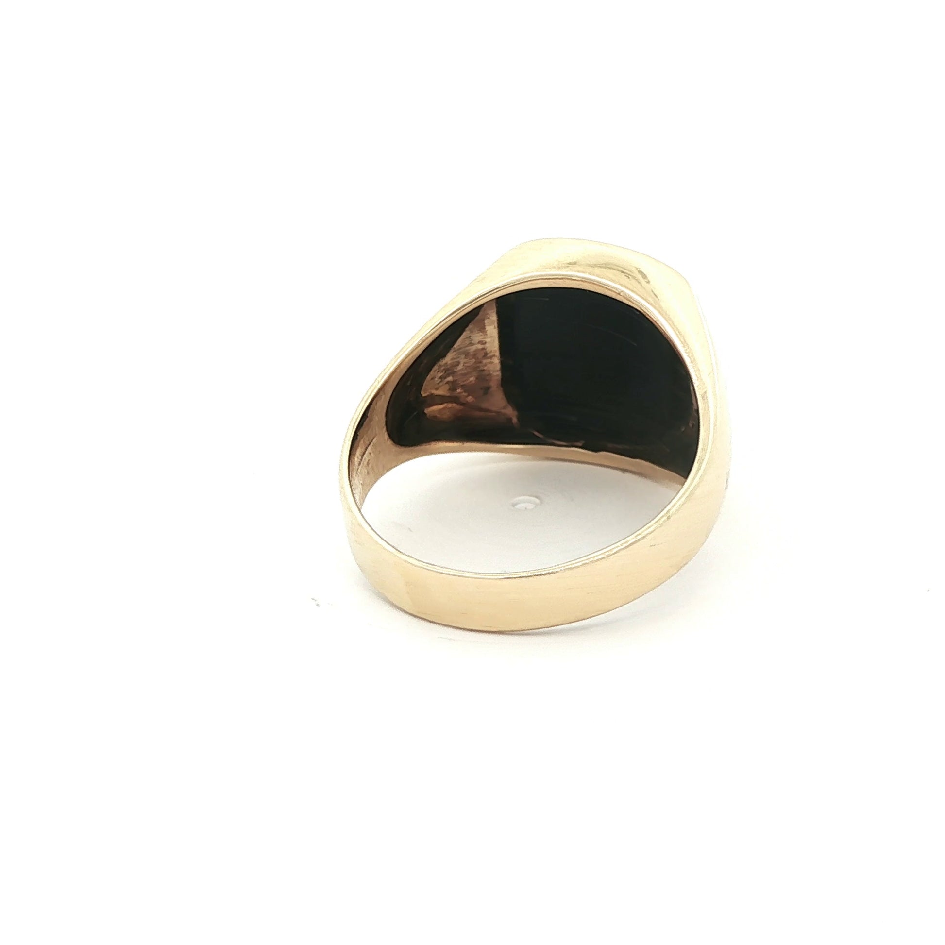 Exude timeless sophistication with this onyx ring, crafted in radiant yellow gold. The ring features a sleek, square-cut rounded corner onyx, offering a bold contrast and refined elegance. A distinguished piece for a statement look.